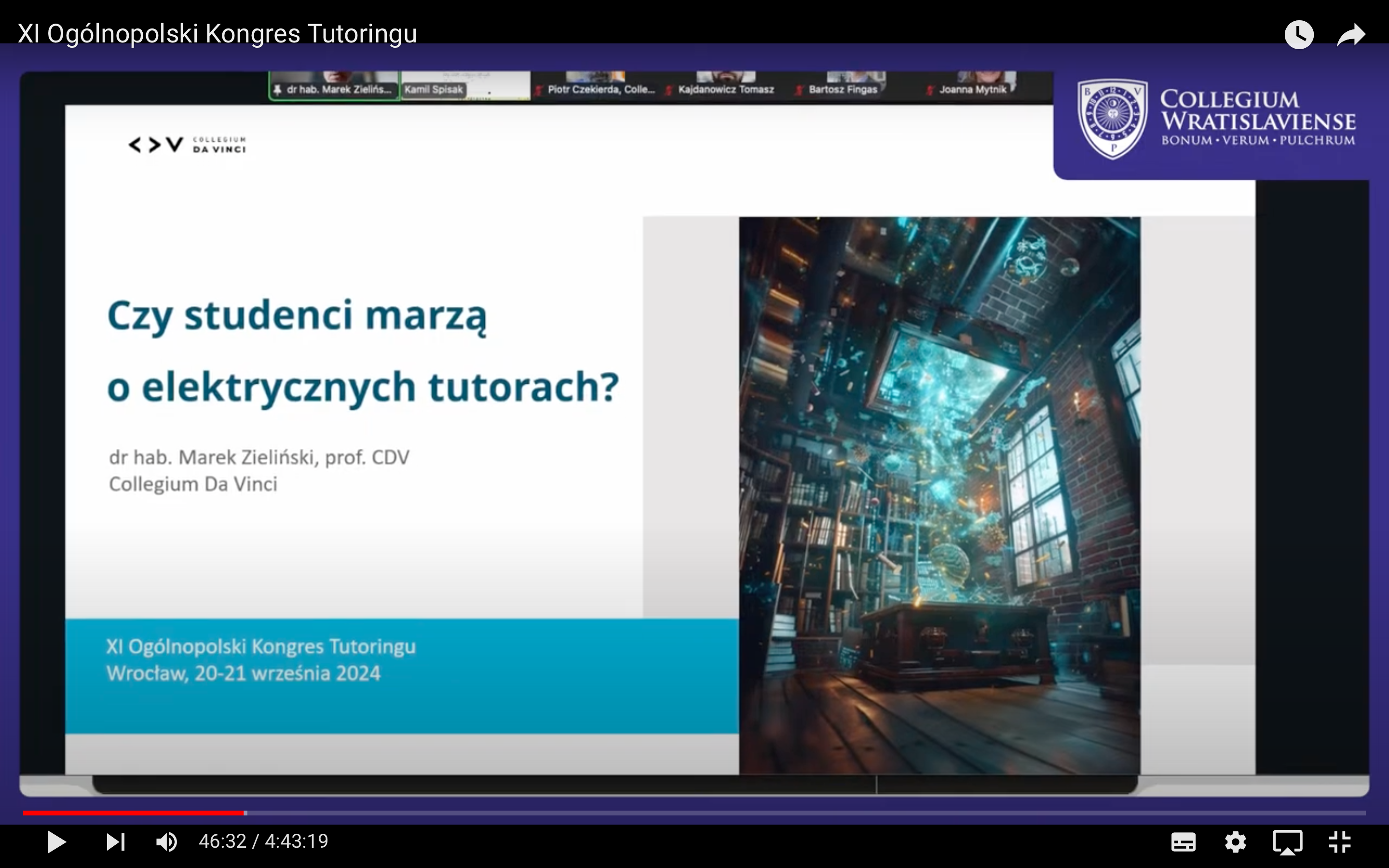 Kongres rozpoczął się od przywitania wszystkich uczestników przez prowadzących: Marię Libiszewską oraz Adriana Lewandowskiego. Następnie, Piotr Czekierda, Prezes Collegium Wratislaviense, wygłosił wykład inauguracyjny pt. „Mistrzowie, uczniowie i maszyny: czy te relacje czeka dobra przyszłość?”. W swoim wystąpieniu podkreślał znaczenie tradycyjnej (klasycznej) relacji między nauczycielem a uczniem, jednocześnie wskazując na wyzwania i możliwości wynikające z integracji sztucznej inteligencji w edukacji.