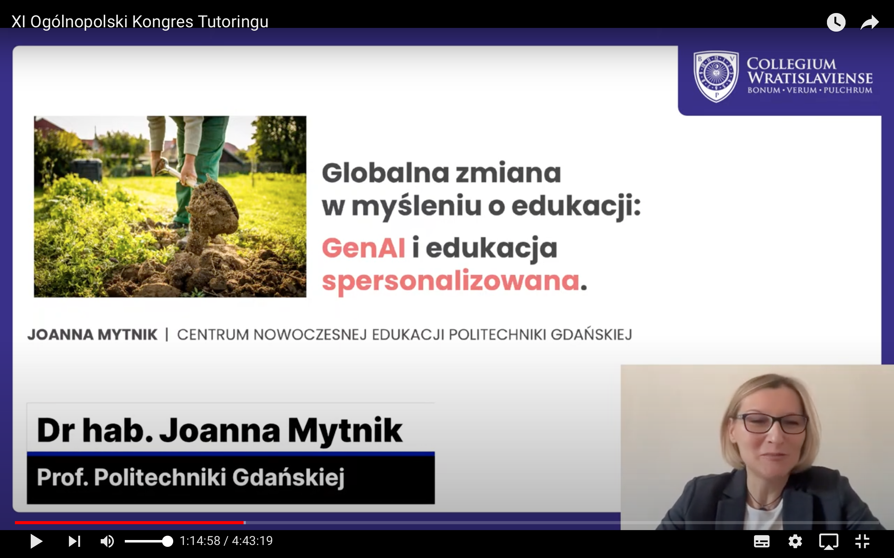 Dalej, prof. dr hab. Joanna Mytnik z Politechniki Gdańskiej wygłosiła referat pt. „Globalna zmiana w myśleniu o modelach edukacyjnych: genAI i edukacja spersonalizowana”. Wskazywała na wpływ generatywnej sztucznej inteligencji na transformację modeli edukacyjnych oraz możliwości dostosowania procesu nauczania do indywidualnych potrzeb możliwie wszystkich uczestników.