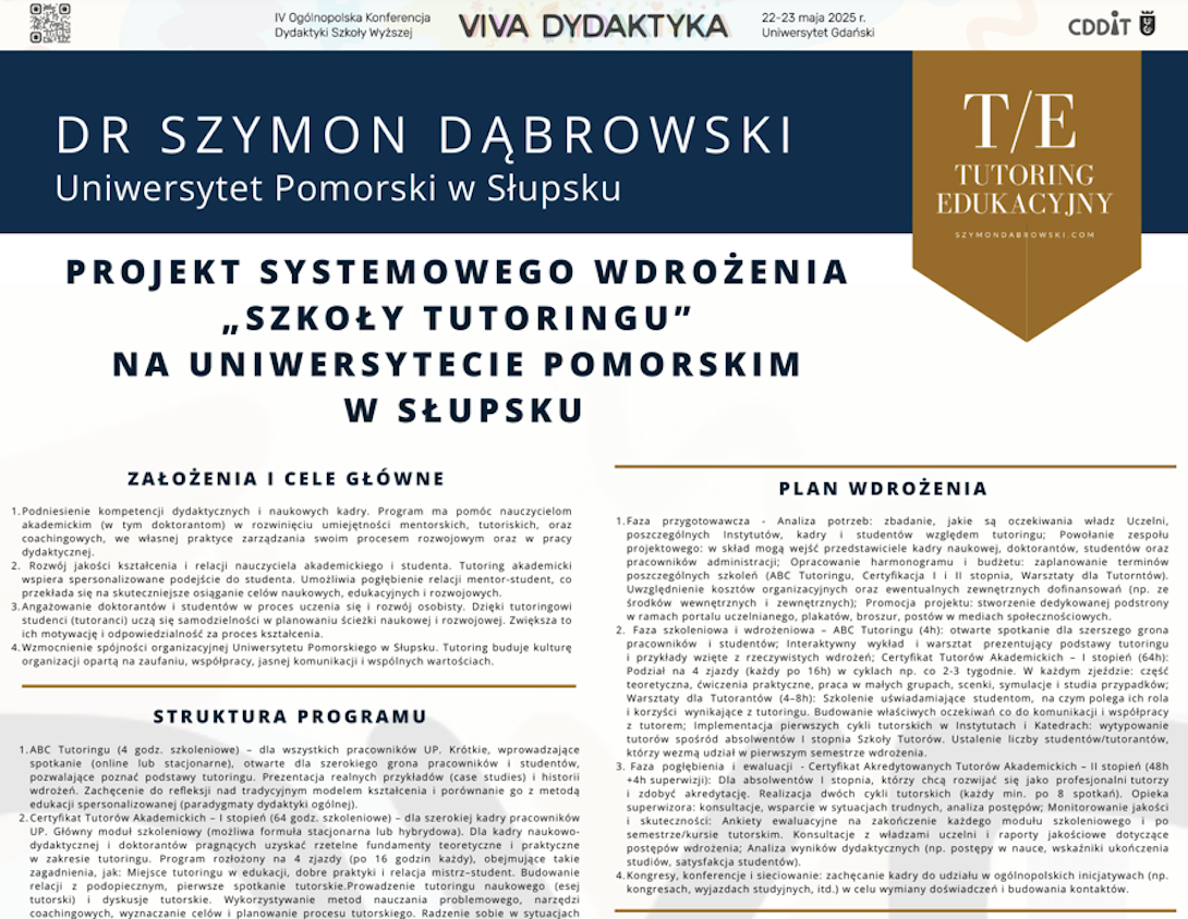 Projekt systemowego wdrożenia „Szkoły Tutoringu” na uniwersytecie